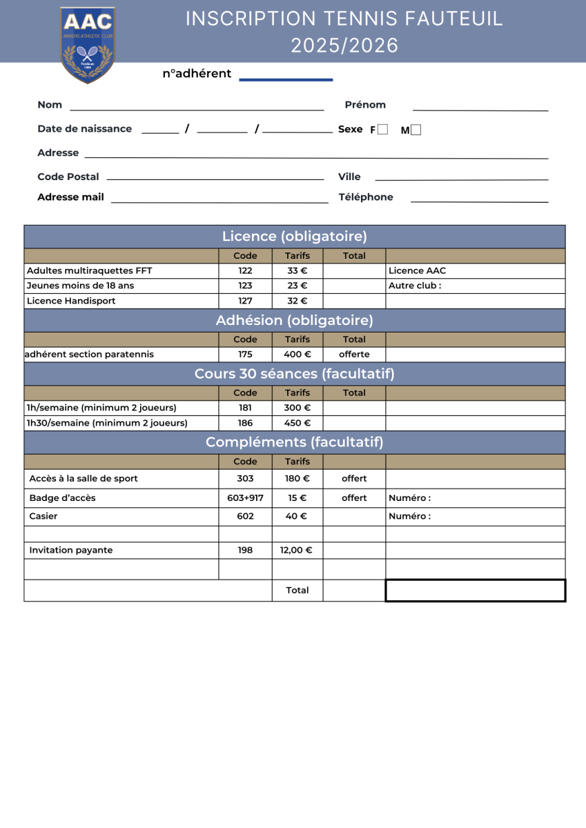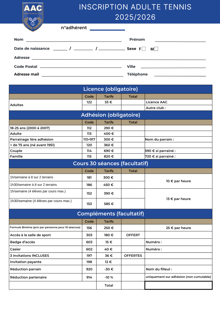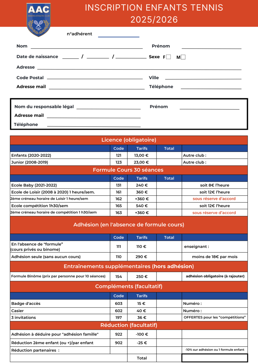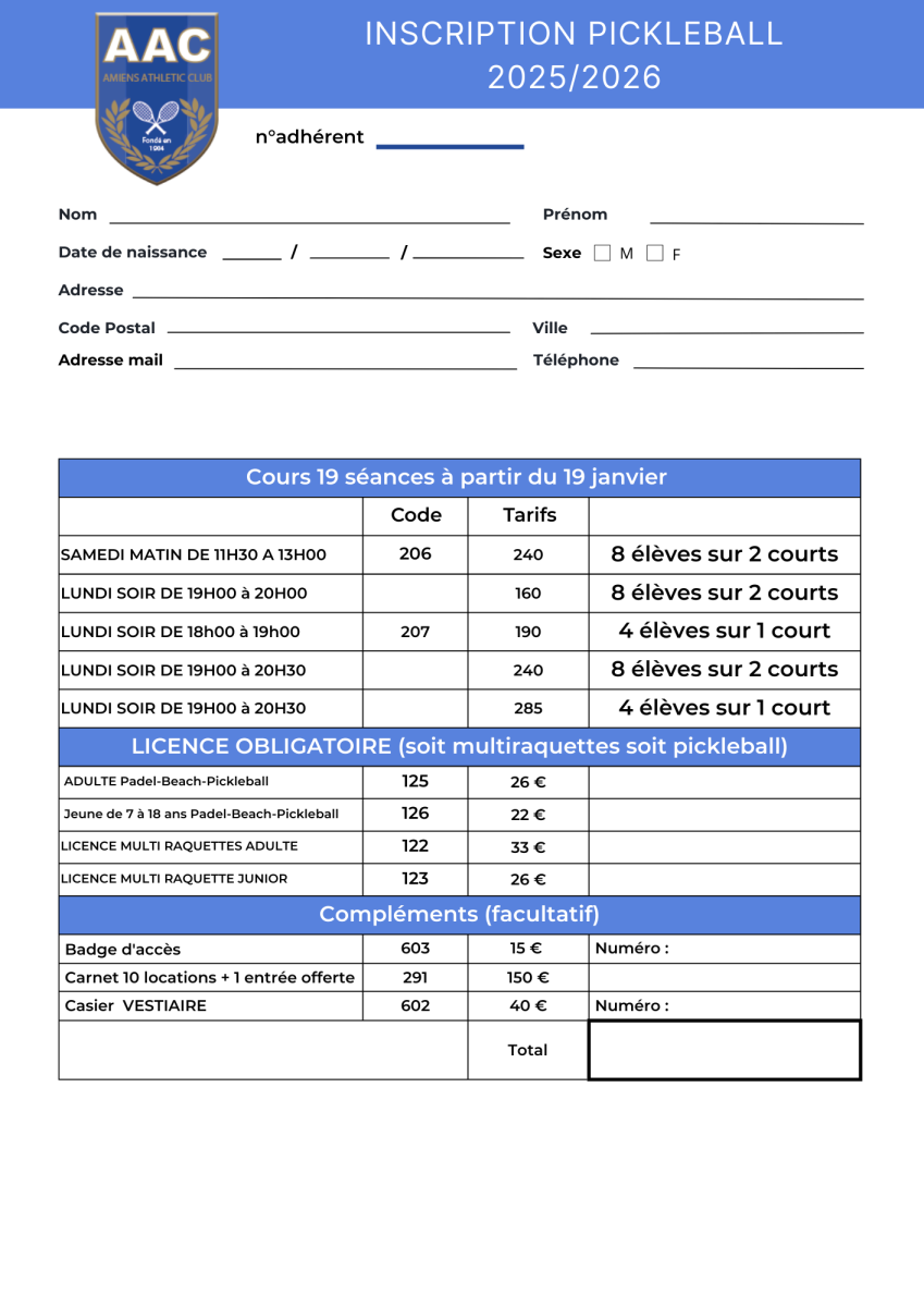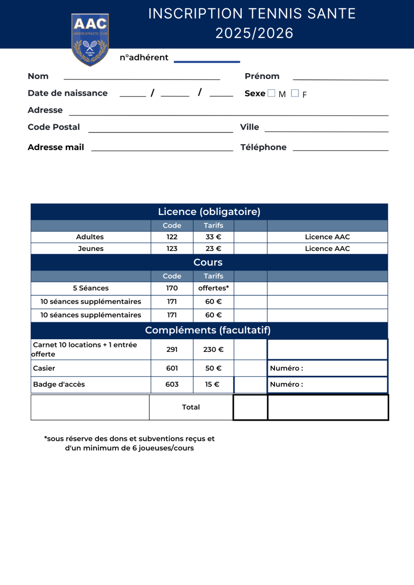 d’inscription pour les cours collectifs de la saison 2025/2026 sont